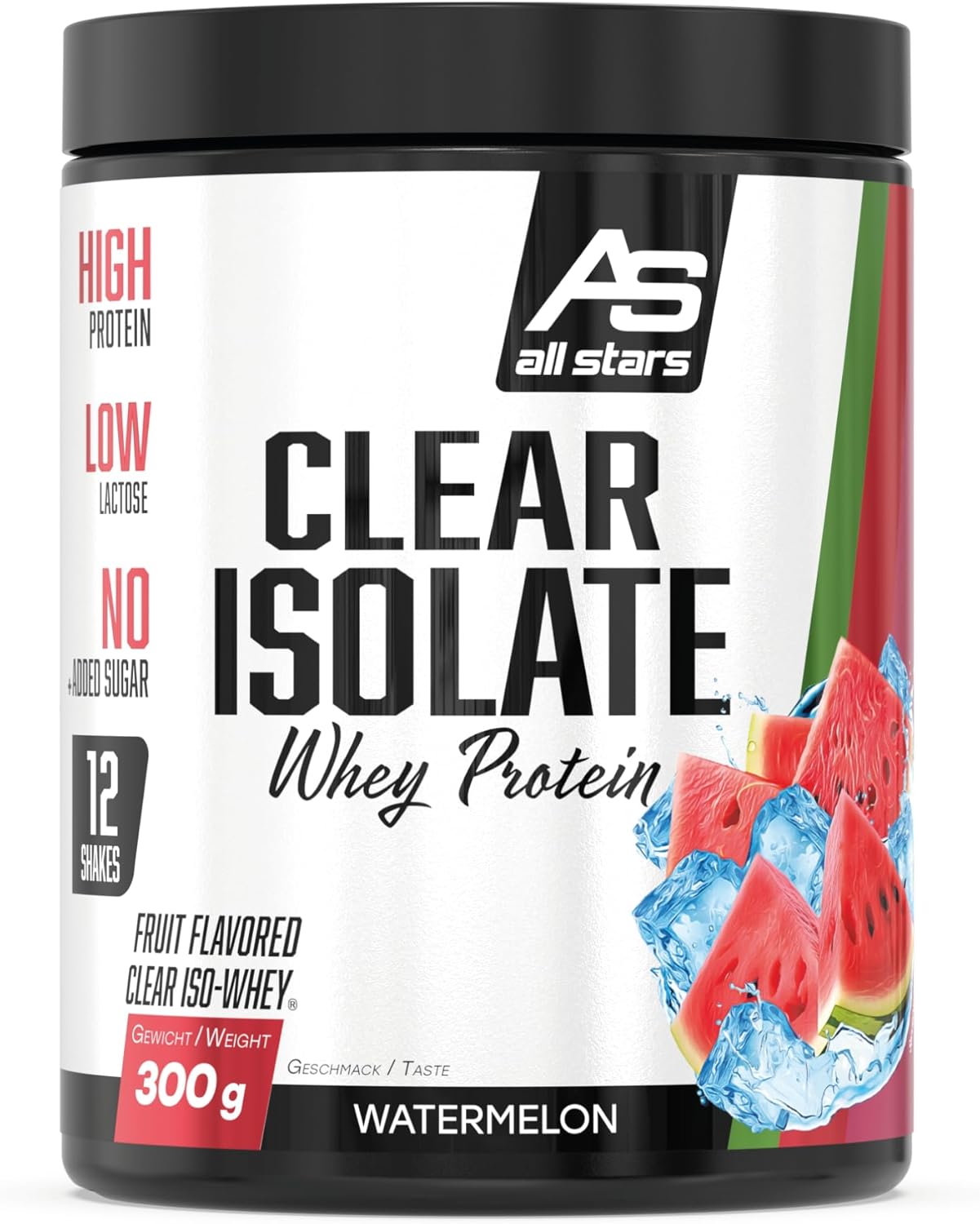 Auch das CLEAR ISOLATE WHEY PROTEIN von All Stars wird, wie das ‚normale‘ Whey Protein, aus Molkenprotein hergestellt. Dabei durchläuft es Herstellungsprozesse, die es zu einem sehr reinen und hochwertigen Eiweiß machen, reich an Protein (meist über 90%) und mit einem umfangreichem Aminosäureprofil. Sein Fett- und Kohlenhydratanteil ist sehr gering, was Isolat Pulver zu einem perfekten Begleiter für jede Diät und Definition macht. Insbesondere als CLEAR ISOLATE WHEY PROTEIN, dass durch seinen fruchtig frischen Geschmack zur Mischung mit Wasser einlädt. Wie jedes Protein unterstützt Whey Protein Isolat das Wachstum und den Erhalt von Muskelmasse, wird vom Körper schnell aufgenommen und steht den Muskeln daher schnell zur Verwendung zur Verfügung .