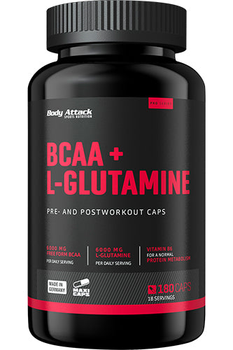 Das Produkt Body Attack BCAA + Glutaminsäure 12000 liefert die drei aufgeführten Aminosäuren sowie Glutaminsäure in den beliebten Maxi-Caps, die noch mehr Wirkstoff als herkömmliche Kapseln enthalten und sich leicht mit etwas Flüssigkeit einnehmen lassen. Eine Tagesportion Body Attack BCAA + Glutaminsäure 12000 besteht aus 10 Kapseln und enthält 6000 mg L-Glutaminsäure und 6000 mg BCAA.
