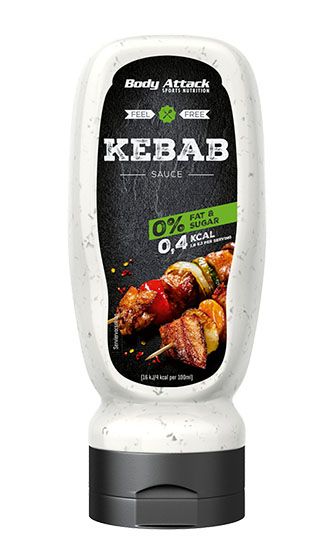 Die Body Attack Kebab Sauce ist eine fett- und kalorienarme Variante des beliebten Klassikers. Sie ist nicht nur kräftig im Geschmack, sondern liefert pro Portion (10 ml) nur 0,2 kcal. Dies resultiert überwiegend aus dem geringen Anteil an Kohlenhydraten und Fett. Auf eine Portion liefert die Kebab Sauce 0 g Fett und 0 g Zucker.