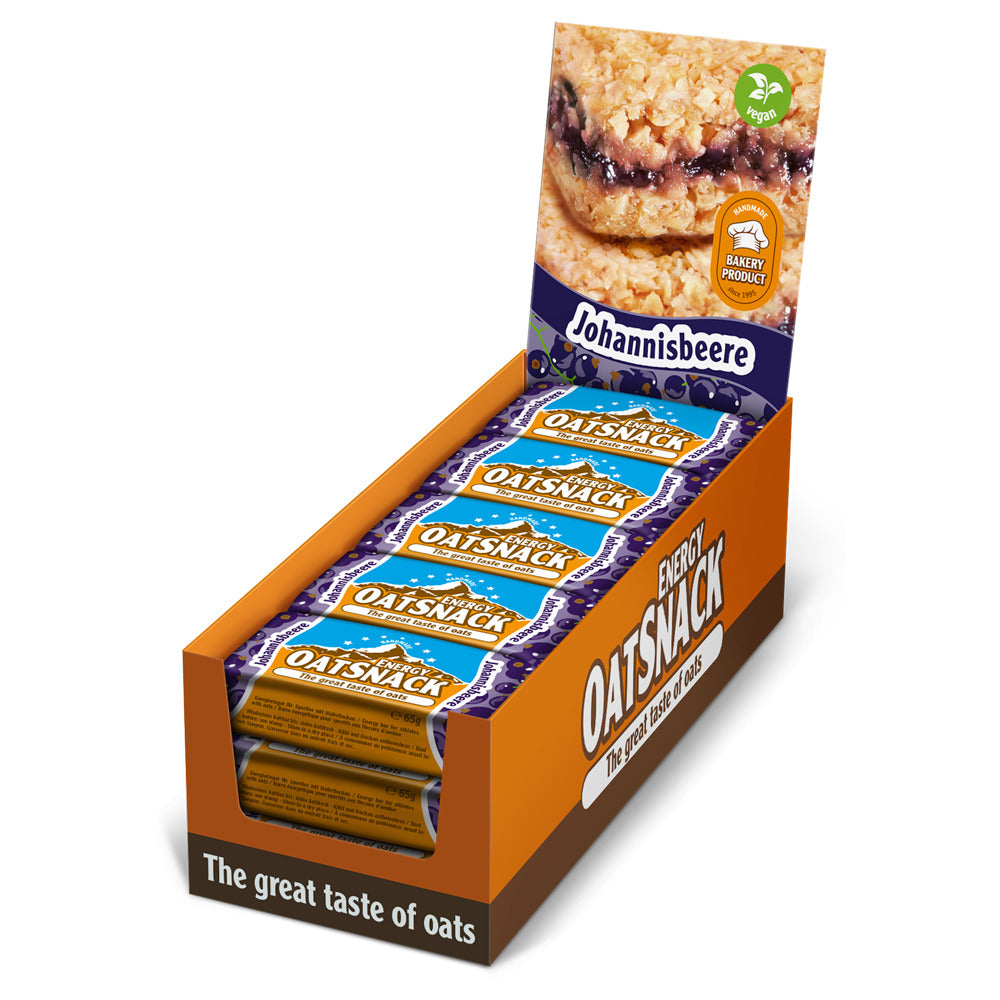 Haferflocken bilden die Basis für den Energy OatSnack, der je nach Geschmacksvariation mit ausgewählten Zutaten wie Früchten, Nüssen oder Kokosflocken verfeinert wird. Der Riegel sorgt auch ohne Topping für ein leckeres Geschmackserlebnis. Der ideale Snack für zwichendurch.