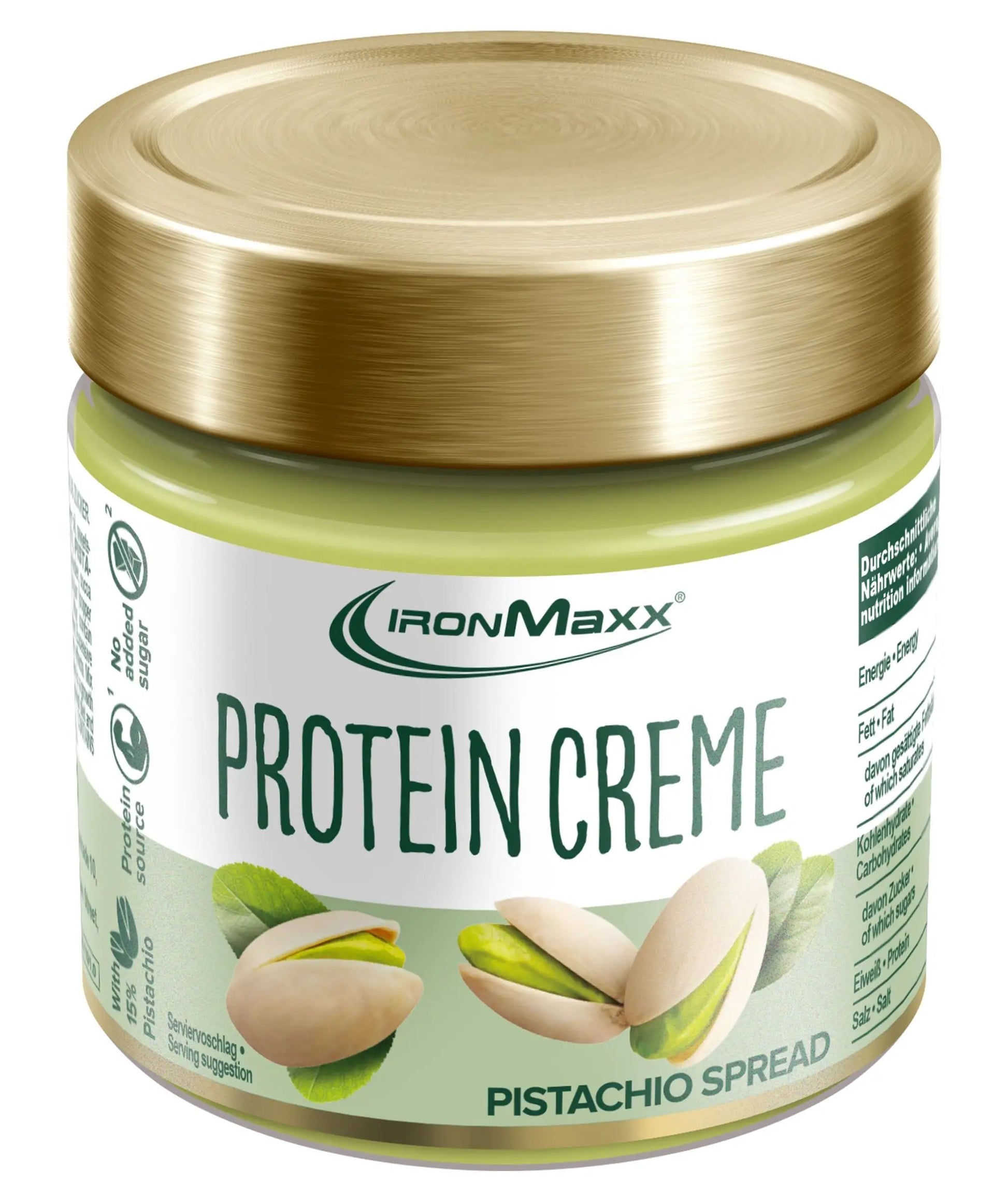 Die IronMaxx® Protein Creme ist die ideale Wahl für alle, die sich eiweißbewusst ernähren möchten – ohne dabei auf cremigen Genuss zu verzichten. Mit 22 g Protein pro 100 g trägt sie zum Erhalt sowie zur Zunahme an Muskelmasse bei und eignet sich perfekt für aktive Lebensstile. Verfeinert mit 15 % Pistazien und 17,5 % Milcheiweiß bietet die Creme ein intensives, nussig-cremiges Geschmackserlebnis. Ob als Brotaufstrich, im Porridge, als Füllung oder pur – sie lässt sich vielseitig in den Alltag integrieren.Die streichzarte Textur und die Rezeptur ohne zugesetzten Zucker* machen die Protein Creme zu einer funktionellen Alternative zu herkömmlichen Aufstrichen – für bewussten Genuss zu jeder Tageszeit.