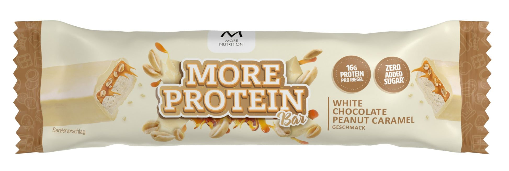 - More Protein: Wie es sich für einen Proteinriegel gehört, versorgt dich ein More Protein Bar mit 16g Eiweiß - ein echtes High-Protein-Paket