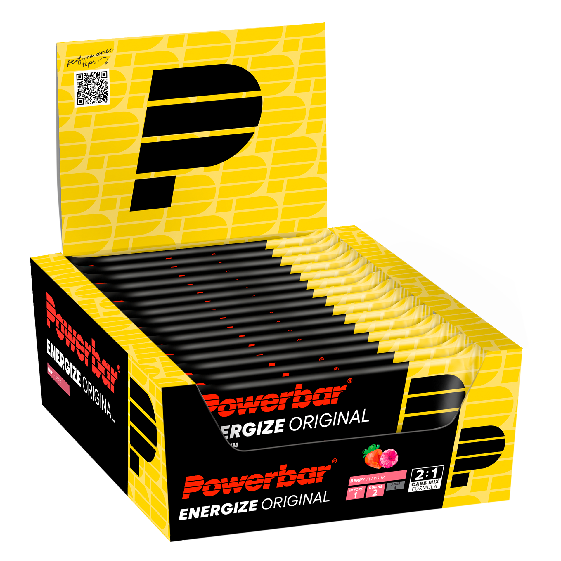 PowerBar hat schon im Jahr 1986 den weltweit ersten Kohlenhydratriegel entwickelt. Der Energize Original Riegel ist ein idealer Kohlenhydratlieferant in fester Form, aber trotzdem leicht zu kauen. Mit C2MAX liefert er dir eine wissenschaftlich entwickelte Kohlenhydratmischung mit einem 2:1 Verhältnis aus Glukose- und Fruktosequellen, sowie zur Unterstützung des Mineralienhaushalts Natrium und Magnesium.