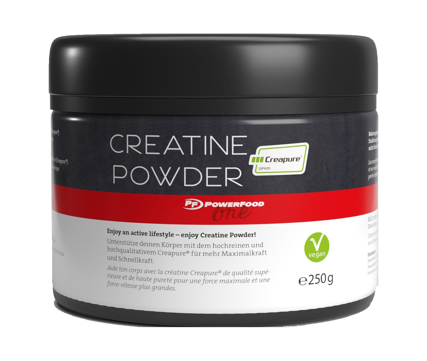 Das PowerFood One Creapure® Creatine Powder enthält das in Deutschland produzierte Creapure®, das weltweit als das reinste und hochwertigste Kreatin gilt. Es handelt sich hierbei um ein mikrofeines Pulver, das frei von Laktose und Gluten ist.