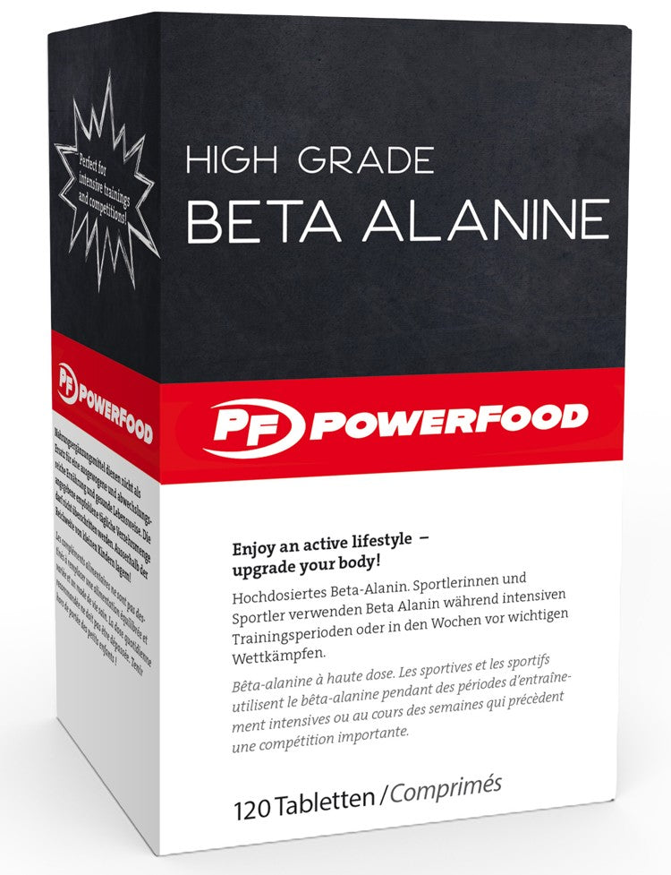 Die PowerFood One High Grade Beta Alanine Caps liefern pro Einzelportion 800mg und pro Tagesportion 3200mg Beta Alanin.
