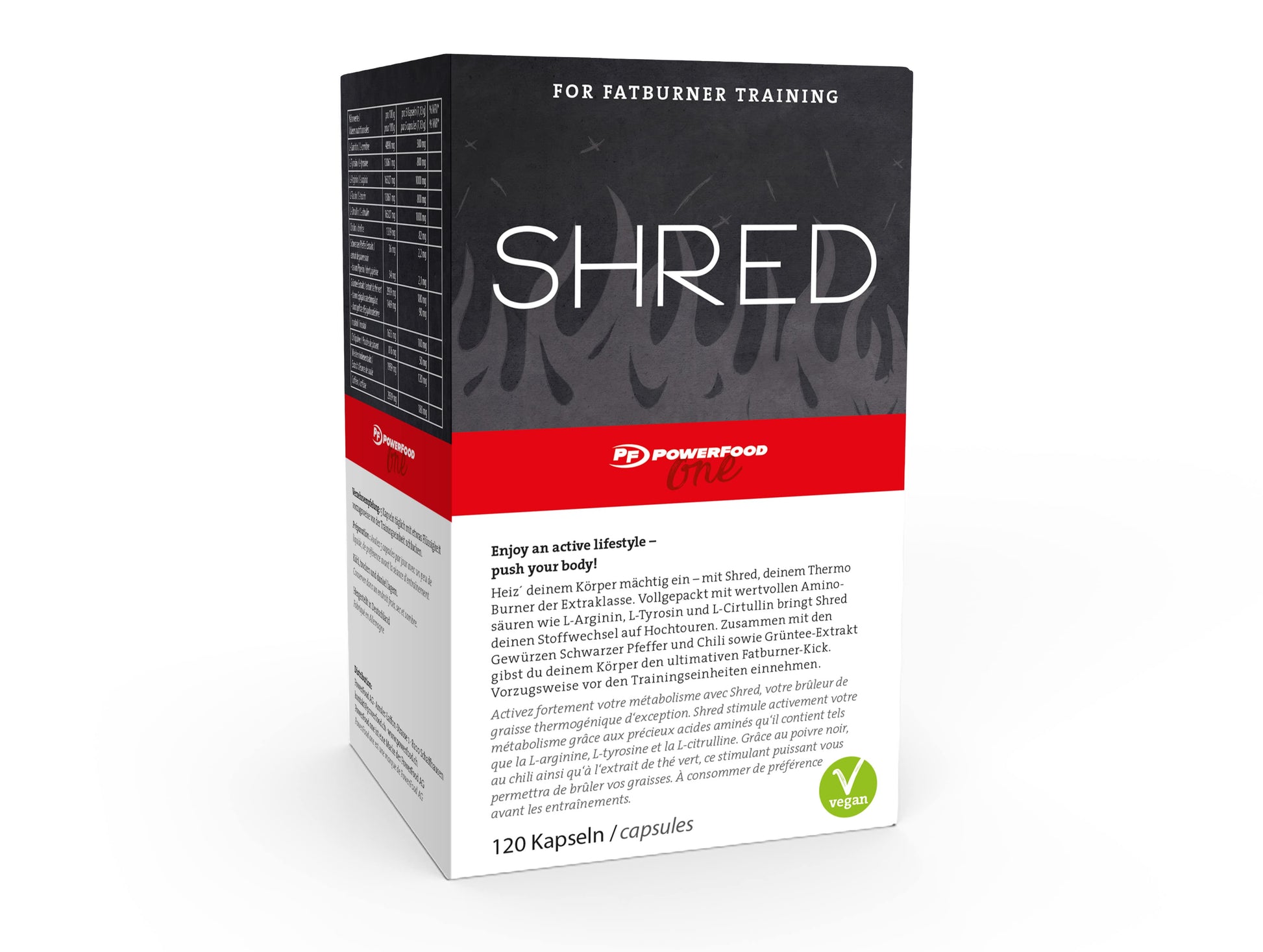 Get Shredded und Heiz' deinem Körper mächtig ein - mit Shred, deinem Thermo Produkt der Extraklasse. Vollgepackt mit wertvollen Inhaltstoffen wie Schwarzer Pfeffer, Chili, Grüntee-Extrakt, Cholin, L-Carnitin, Weidenrinden-Extrakt, Aminosäuren wie L-Arginin, L-Tyrosin und L-Citrullin unterstützt Shred Dich bei Deinem Fat Burner Training. Zusammen mit Coffein und Niacin gibst du deinem Körper den ultimativen Kick.