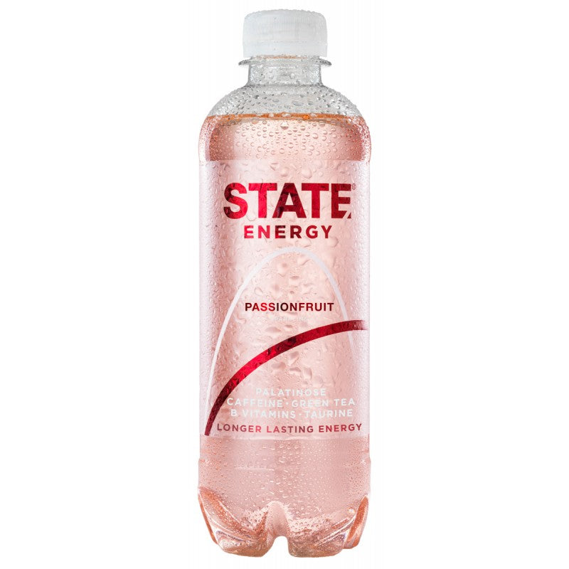 STATE Energy enthält 128 mg Koffein, Palatinose, B6/B12-Vitamine, Taurin, Grüntee-Extrakt, natürliches dänisches Mineralwasser und erfrischende Aromen.