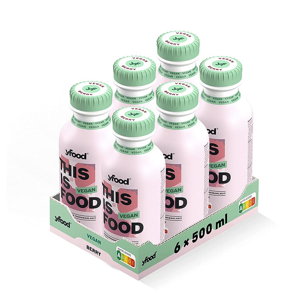 Berry: Wasser, Sojaprotein, pflanzliche Öle (Rapsöl, Sonnenblumenöl), Maltodextrin, glutenfreie Haferfaser, Tapiokastärke, lösliche Maisfaser, Reismehl, Maisstärke, Reisstärke, getrockneter Reissirup, Vitamin A, Vitamin D, Vitamin K, Vitamin C, Thiamin, Riboflavin, Niacin, Vitamin B6, Folsäure, Vitamin B12, Biotin, Pantothensäure, Magnesiumoxid, Zinksulfat, Mangansulfat, Natriumselenit, Chrom(lll)- Chlorid, Natriummolybdat, Kaliumiodid, Calciumcarbonat, Kaliumchlorid, Salz, Stabilisatoren: Johannisbrotkernmehl, Gellan; Süßungsmittel: Sucralose; Emulgator: Lecithine (Soja); natürliche Aromen.