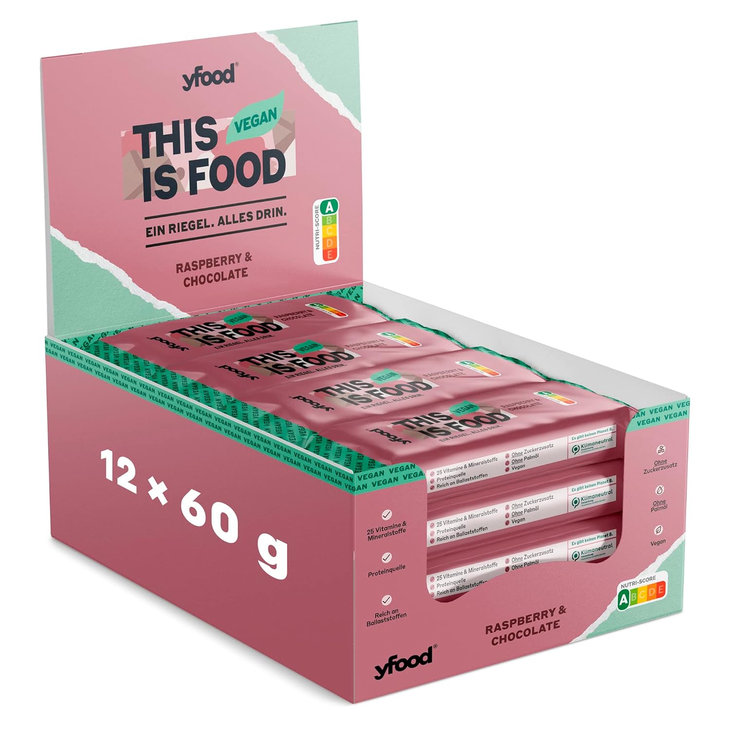 Yfood Vegan Protein Bar (12 x 60G) Raspberry & Chocolate