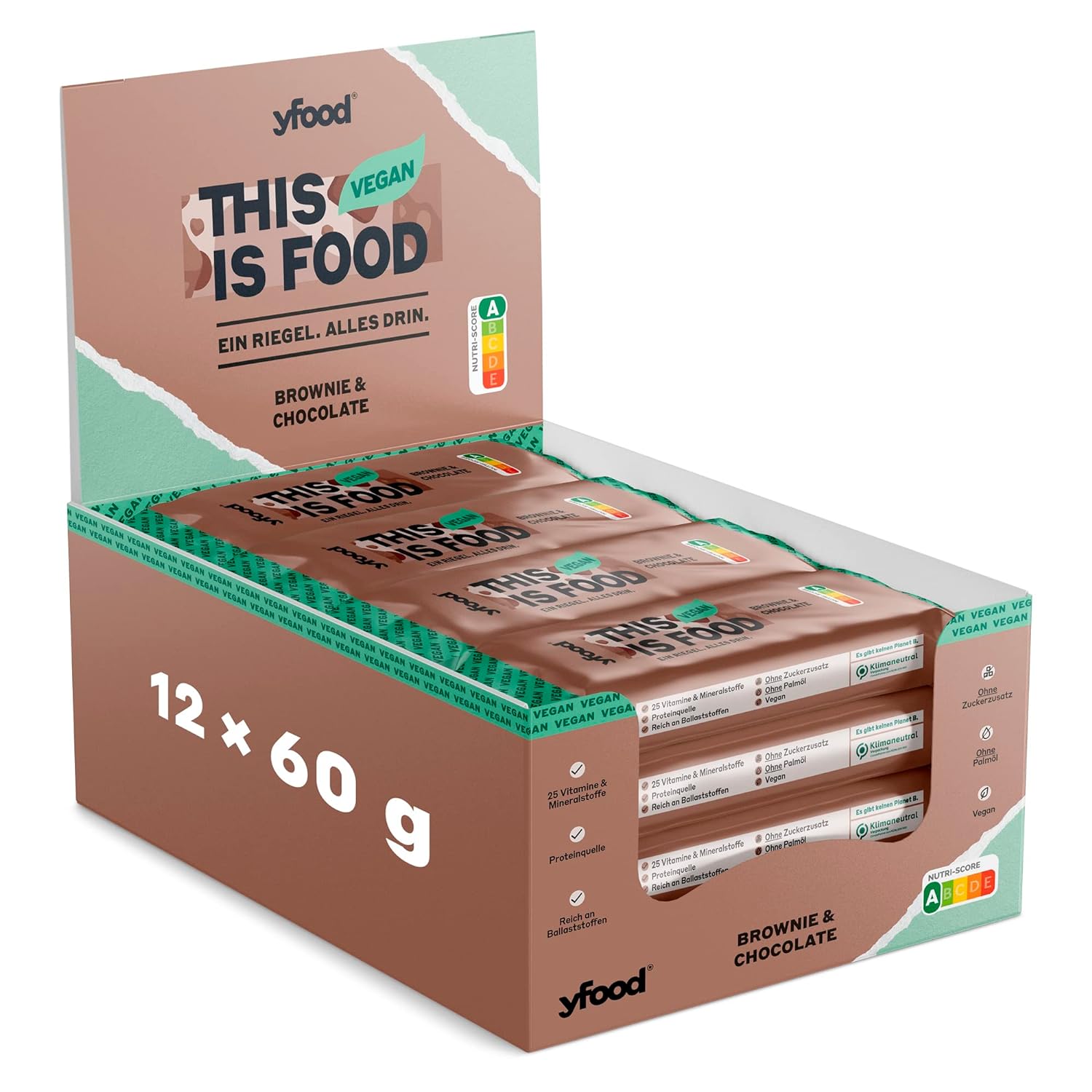 Yfood Vegan Protein Bar (12 x 60G) Brownie & Chocolate